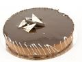 Layers of chocolate sponge sandwich a creamy caramel mousse. The cake is finished with a thick covering of chocolate ganache.